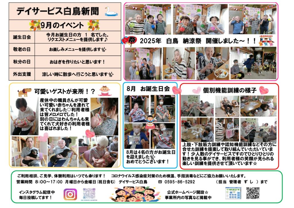 事業所名 | デイサービス白鳥 事業所番号:2470400967 |